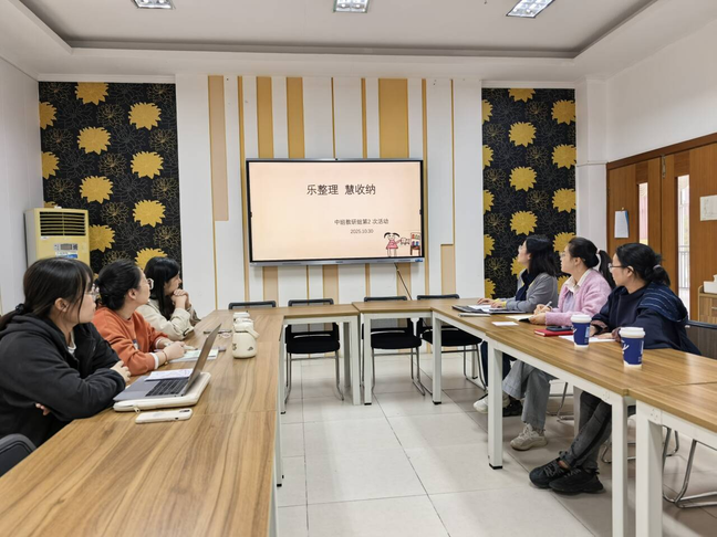 2025年10月30日下午12:30~14:00娄江幼儿园中班教研组围绕中班幼儿“乐整理、慧收纳”,组织开展了专题研修活动,旨在通过深入学习与研讨,引导幼儿学会分类整理和存放个人物品,指导幼儿逐步学会分类整理和收纳衣物、图书、玩具、学习用品等,助力幼儿全面发展。本次活动无学时。