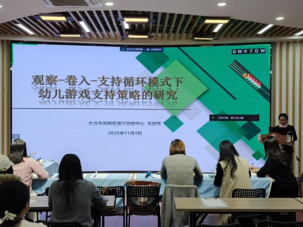 2025年11月5日,高新区娄江幼教中心业务主任毛丽芳面向中心骨干教师,成功举办了一场题为《“观察 - 卷入 - 支持”循环模式下幼儿游戏支持策略的研究》的读书活动研讨活动。此次活动旨在深化教师对幼儿游戏行为的理解,提升其观察与支持能力。