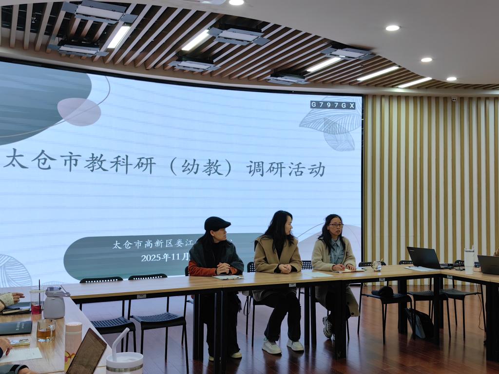 2025年11月17日下午,太仓市高新区娄江幼教中心接受太仓市教科研(幼教)调研。太仓市教师发展中心张雪老师莅临指导,太仓市娄江幼教中心沈英主任、各课题组主持人参加了此次活动,活动由毛丽芳业务主任主持。